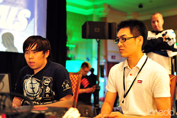 今年的EVO剛剛落幕,SSF4的冠軍一樣是那個生化人-梅原。不過在第一天的賽事就出現了極大的高潮。去年的亞軍-美國冠軍JUSTING WONG被名不見經傳的台灣高手-小向幹掉。第二天的賽事雖然在四強外止步,但小向真是台灣之光阿! 與賈斯汀王對戰中的小向。勝利後接受群眾歡呼的小向。